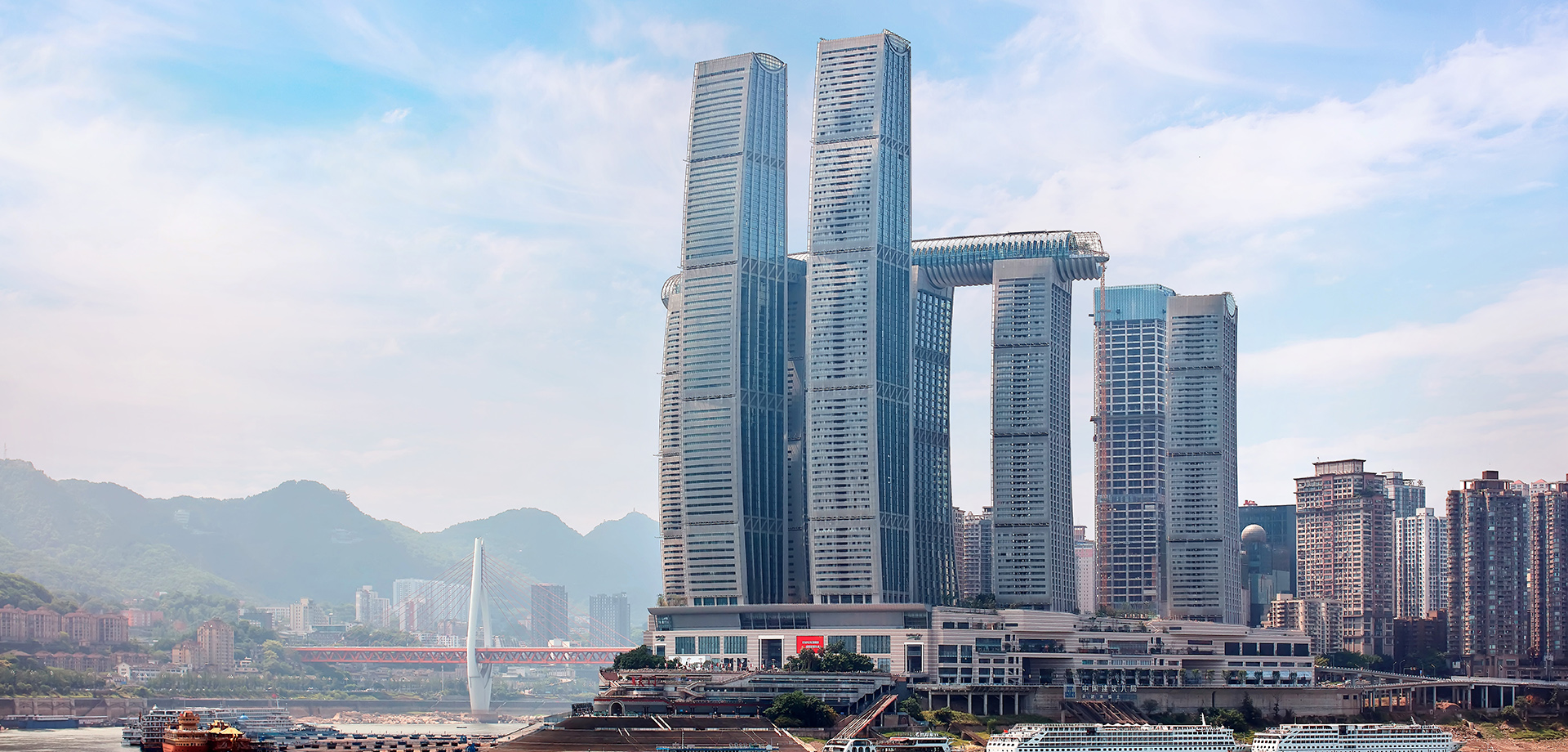 建筑高度:250 m(56層) 幕墻面積:15.3萬(wàn)m2 項(xiàng)目設(shè)計(jì):薩夫迪建筑設(shè)計(jì)事務(wù)所、重慶市設(shè)計(jì)院 幕墻類(lèi)型:新型單元式幕墻、石材幕墻 、金屬板幕墻等