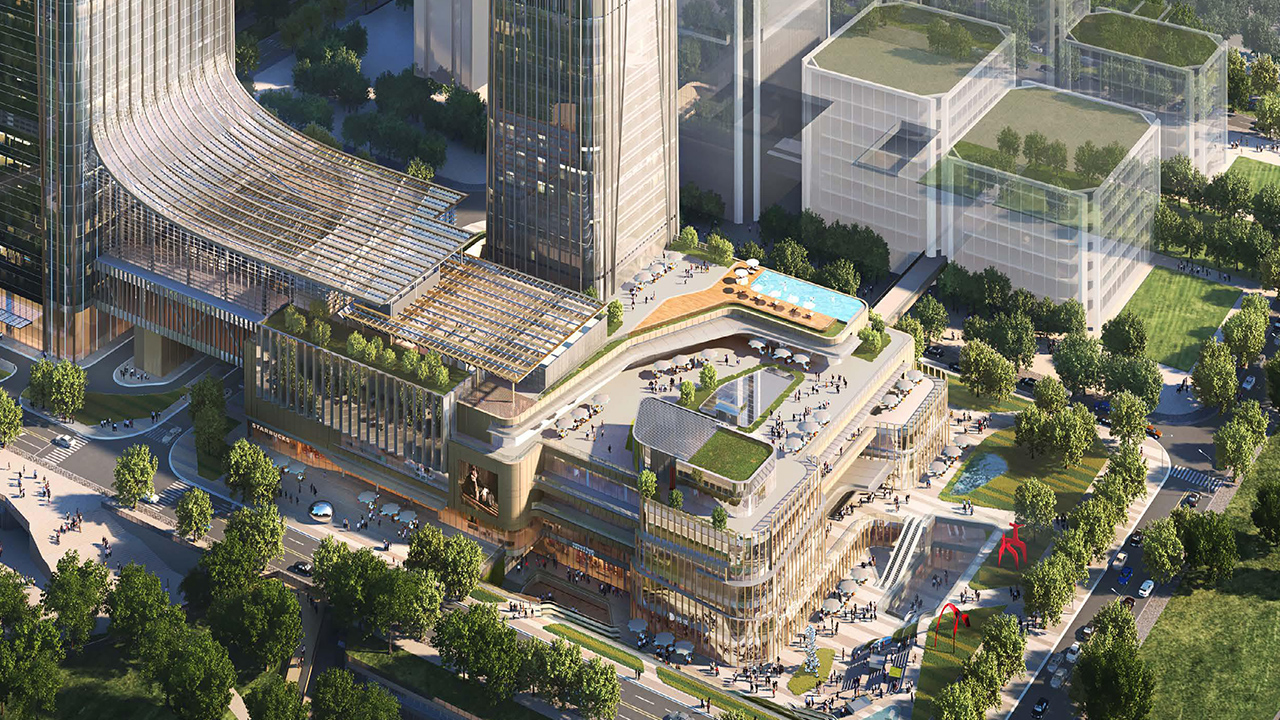 建筑高度:300米(A塔62層)、170米(B塔)