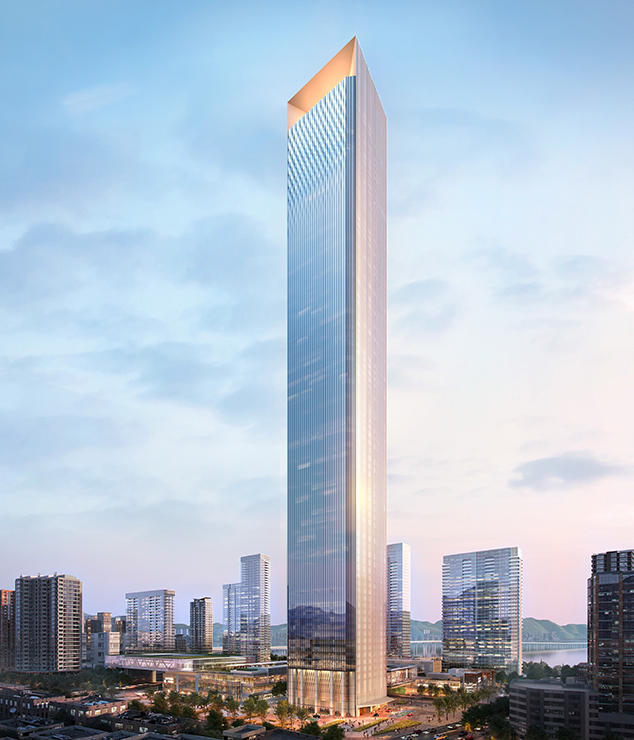 建筑高度:380m(79層) 幕墻面積:13.9萬m2 項(xiàng)目設(shè)計(jì):SOM建筑事務(wù)所/浙江綠城建筑設(shè)計(jì)有限公司 幕墻類型:單元式玻璃幕墻、編制式單元幕墻等