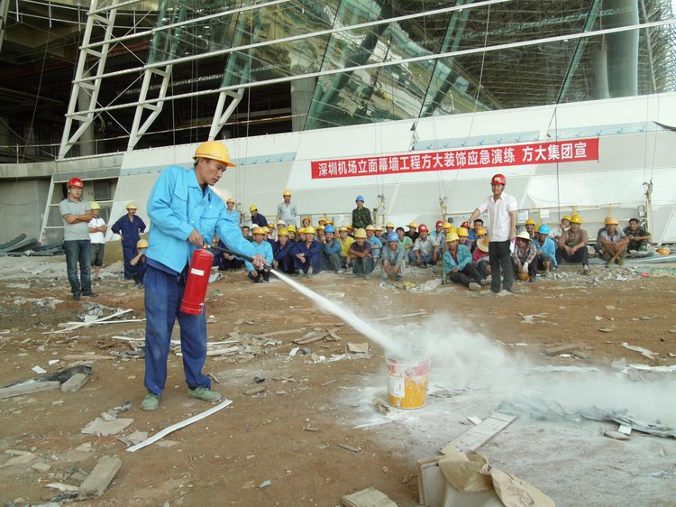 7月3日下午,為了檢驗今年全國“安全生產(chǎn)月”的成果和深圳機場T3航站樓幕墻工程項目的安全生產(chǎn)應(yīng)急能力,方大集團、深圳市方大裝飾工程有限公司組織開展了為期半天的幕墻施工防火、防高墜、防坍塌安全事故應(yīng)急演練。集團公司安全主管尚清波、裝飾公司安全部經(jīng)理丁志剛、T3航站樓項目部副經(jīng)理高晶參與現(xiàn)場演練組織指揮。這次安全應(yīng)急演練,檢驗了現(xiàn)場管理和施工人員面對緊急情況的應(yīng)急處置能力和水平,提高了大家的安全應(yīng)急意識和水準,整個演練過程銜接到位,收到了良好的預(yù)期效果。