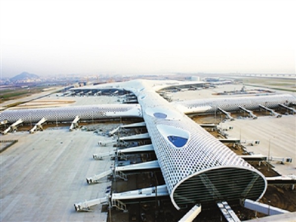 深圳機場T3航站樓是深圳寶安國際機場擴(kuò)建工程的主體部分,由深圳機場T3航站樓和GTC兩個部分組成。其中T3航站樓占地19.5萬平方米,南北長約1128米,東西寬約640米,總建筑面積45.1萬平方米,方大集團(tuán)承建的立面幕墻面積為16.7萬平方米,主立面采用呈60.2度傾斜的方大Low-E節(jié)能環(huán)保玻璃幕墻,既為旅客帶來更為開闊的視野,也為整個大廳帶來充足的自然光。