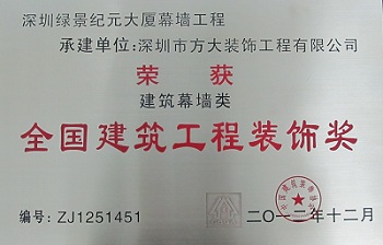 近日,中國建筑裝飾協(xié)會“2011~2012年度全國建筑工程裝飾獎”評選結(jié)果揭曉,方大集團全資子公司深圳市方大裝飾工程有限公司承建的深圳綠景紀元大廈幕墻工程、深圳高新區(qū)軟件大廈幕墻工程、三亞鳳凰島養(yǎng)生公寓幕墻工程、廈門國際物流中心幕墻工程等四項高端幕墻工程榮獲“2011-2012年度全國建筑工程裝飾獎”。