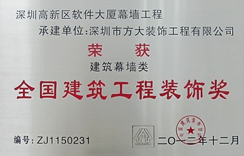 “全國建筑工程裝飾獎”是國家住房和城鄉(xiāng)建設(shè)部批準設(shè)立的中國建筑裝飾行業(yè)的最高榮譽獎,由中國建筑裝飾協(xié)會主辦評選,每兩年評選一次。此次深圳市方大裝飾工程有限公司一舉獲得四項“全國建筑工程裝飾獎”,突顯了方大幕墻在建筑裝飾行業(yè)設(shè)計與施工水平等方面的優(yōu)勢,反映了方大裝飾公司在企業(yè)管理、技術(shù)實力、質(zhì)量保證體系等方面的實力。