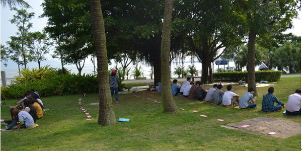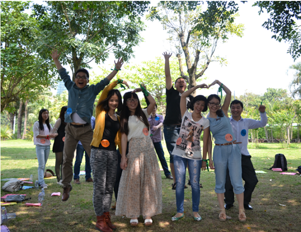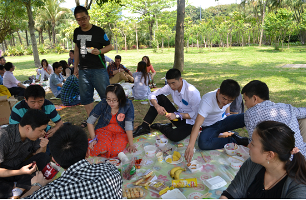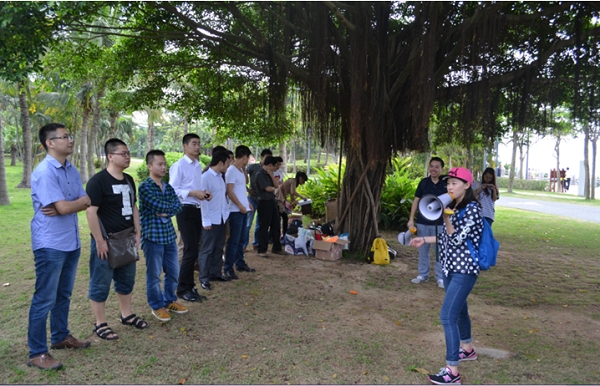 活動當(dāng)天,大家意興盎然來到了深圳灣公園,通過簡單的自我介紹,在5分鐘時間內(nèi)迅速找到自己的搭檔,然后進(jìn)行互相介紹,之后每個人拿出自己精心準(zhǔn)備的食物跟大家進(jìn)行分享。分享過后大家迫不及待地投入到“報紙大聯(lián)盟”、“五毛一塊”、“幸福彼岸”、“群魔亂舞”“電動馬達(dá)臀”等游戲中。大家用歌聲、舞蹈和游戲傳遞著快樂與情誼,進(jìn)一步拉近著彼此間的距離。一個個激動人心的互動小游戲?qū)⒙?lián)誼會推向高潮,一個個刁鉆的懲罰方式更令人捧腹。在“報紙大聯(lián)盟”、“幸福彼岸”的游戲環(huán)節(jié)中,大家踴躍參加,使出渾身解數(shù),各顯智慧,用默契的配合共同爭創(chuàng)佳績。游戲之后,大家進(jìn)入到了最神秘的“背對背的秘密”環(huán)節(jié),男女生各站一排,相背而坐,大家依次將自己的心意卡放進(jìn)了心儀異性的信封中。最后,大家兩兩相約,共同踏上單車盡享初夏深圳灣的風(fēng)景。整個活動中,大家熱情交談,彼此了解興趣愛好,互留聯(lián)絡(luò)方式,活動之后還制作了聯(lián)誼會通訊錄,以便今后更好地繼續(xù)交流互動。