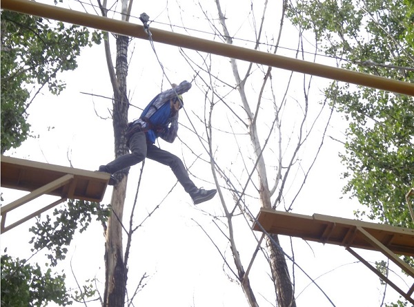接著,兩個小組分別進(jìn)行了“信任背摔”、“七巧板”、“高空斷橋”等科目培訓(xùn),以建立團(tuán)隊(duì)成員間的相互信任,有效溝通與自我突破。“尋找劉連長”活動在影視城穿越中進(jìn)行,兩個小隊(duì)按照教練給定的“動感顛球”、“穿越A4紙”、“飛龍升天”、“眉目傳情”、“百獸秘影”5個圖片的先后順序找到相應(yīng)的點(diǎn),通過大家的集思廣益相互協(xié)作和有效溝通完成,最終在規(guī)定時間內(nèi)找到劉連長。通過這個訓(xùn)練科目,大家明白了個人是整體的一部分,在聽從指揮的情況下,還要發(fā)揮各自的特長,把優(yōu)質(zhì)資源整合在一起,才能發(fā)揮更大的作用,產(chǎn)生更大的效能,實(shí)現(xiàn)最終目標(biāo)。