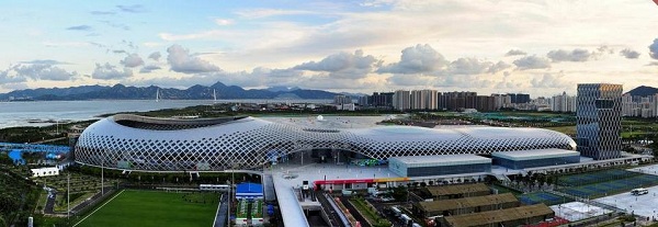 深圳灣體育中心“春繭”坐落于深圳市南山后海中心區(qū),是第26屆世界大學(xué)生夏季運(yùn)動會分會場之一和開幕式場地,總建筑面積約32.2萬平方米,其體育場、體育館、游泳館被置于一個(gè)白色巨型網(wǎng)格狀鋼結(jié)構(gòu)屋面下,線條柔美的大屋頂猶如孕育破繭而出沖向世界的運(yùn)動健兒的孵化器,表現(xiàn)出新的活力。