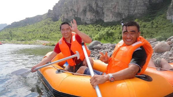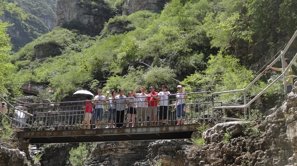 經(jīng)過2個多小時的車程,北京分公司壽星們于上午9時到達(dá)十渡自然風(fēng)景區(qū),開始一天的游玩孤山寨、漂流戲水等活動。孤山寨有著名的“一線天” “山門迎客”、“仙女浴潭”、“千古河床”、“洗心潭”、“石中石”、“銀川冰谷”等景觀,滿眼盡是賞心悅目的異石奇景。壽星們欣賞著自然風(fēng)光,感嘆著天地造物的神奇。遠(yuǎn)離城市的宣泄,忘記平時工作的緊張與疲憊,全心身不自覺地投入到了大自然的安靜和諧之中,溪水潺潺,鳥蟲低鳴,十分地愜意與舒爽,雖然是爬山觀景,壽星們絲毫沒有倦意。中午稍作休息,壽星們來到溪水邊乘坐皮筏順?biāo)?,在溪水中戲水,最后儼然變成了潑水大?zhàn),溪水打濕了衣襟,壽星們毫不介懷,溪水之上留下了陣陣歡快的笑聲。