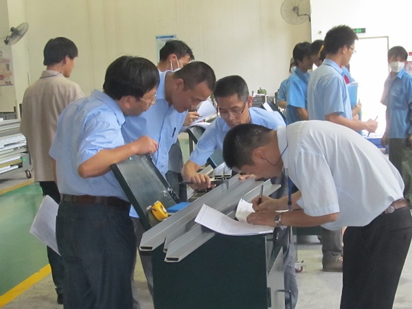 在本次“質(zhì)量月”活動中掀起了學(xué)知識、練技能的高潮,增強了員工的質(zhì)量觀念和意識。自動化公司工廠、型材加工廠、配件加工廠:對操作工人進行言傳身教方式的操作培訓(xùn),要求工人加強自檢,嚴(yán)格控制產(chǎn)品質(zhì)量,對操作工人進行了量具使用的培訓(xùn);加強了員工的看圖識圖培訓(xùn)。組裝廠:堅持定期會議,提高員工的質(zhì)量意識,每天生產(chǎn)結(jié)束后,質(zhì)檢員對當(dāng)天的生產(chǎn)和質(zhì)量情況進行小結(jié),并定期在車間以予公示;使車間的制造質(zhì)量整體上得到了改善和提高。