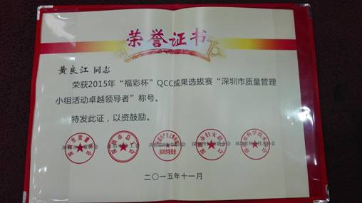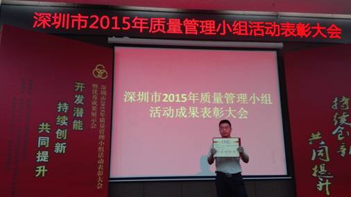 深圳市2015年質(zhì)量管理小組活動(dòng)優(yōu)秀成果、優(yōu)秀企業(yè)和先進(jìn)個(gè)人獎(jiǎng)是由深圳市質(zhì)量協(xié)會(huì)、深圳市總工會(huì)、共青團(tuán)深圳市委員會(huì)、深圳市婦女聯(lián)合會(huì)和深圳市科技技術(shù)協(xié)會(huì)聯(lián)合審定,旨在表彰在2015年深圳市質(zhì)量管理小組活動(dòng)中涌現(xiàn)出的優(yōu)秀企業(yè)、QC小組和個(gè)人。