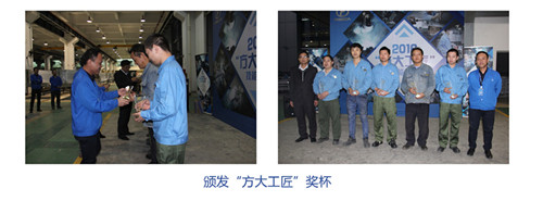 在評委們嚴謹公正的考核下,隨著緊張而激烈的比賽的結束,各比賽工種的評比結果也陸續(xù)出爐。東莞公司的謝輝、蔣亞峰、黨要飛、謝昌元分別獲得下料、組框、打膠、電焊的第一名,江西新材的張文彪、李芳根分別獲得打磨、噴涂的第一名,自動化公司的肖五生獲得組裝三項的第一名。在決賽總結大會上,這7位選手被授予2016年“方大工匠”稱號。不僅如此,他們還將分別獲得1000元現(xiàn)金獎勵、年底加薪及接受集團公司專訪等福利待遇。