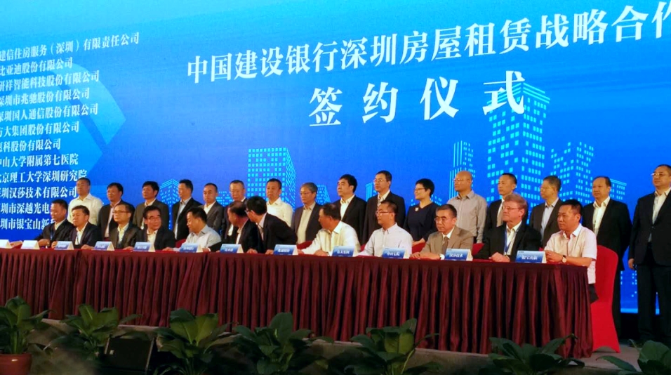 【新華社深圳11月3日電】 3日,建設銀行深圳分行與招商、華潤、萬科、恒大、中海、碧桂園、星河等11家房地產(chǎn)公司,以及比亞迪、方大集團、研祥智能、兆馳等11家企事業(yè)單位舉行住房租賃戰(zhàn)略合作簽約儀式,推出5000余套包括“CCB建融家園”在內(nèi)的長租房源,并發(fā)布個人住房租賃貸款產(chǎn)品,標志著建設銀行正式進軍深圳住房租賃市場。