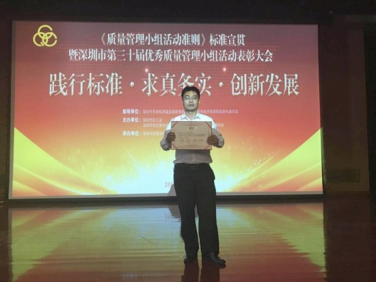 黃良江獲頒“深圳市質(zhì)量信得過班組先進(jìn)個人”榮譽獎