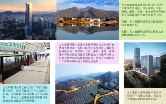 開拓進(jìn)取,塑造了方大集團(tuán)勇于創(chuàng)新的獨特氣質(zhì);光榮與夢想,賦予了方大集團(tuán)繼往開來、再創(chuàng)輝煌的崇高責(zé)任。中國經(jīng)濟(jì)體量大,仍處于快速發(fā)展期,隨著國家“一帶一路”發(fā)展戰(zhàn)略及“十三五”發(fā)展規(guī)劃的持續(xù)深入推進(jìn),中國城市化進(jìn)程還在進(jìn)行中,軌道交通地鐵屏蔽門及幕墻需求巨大。作為行業(yè)龍頭,方大集團(tuán)將抓住“中國制造2025”的機遇,加快轉(zhuǎn)型升級步伐,由“制造+工程型”企業(yè)向“信息化技術(shù)服務(wù)+智能制造型”企業(yè)轉(zhuǎn)變,努力為市場提供更多優(yōu)質(zhì)產(chǎn)品,為社會創(chuàng)造更多財富,為投資者帶來更加豐厚的回報。