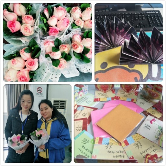 在東莞,因生產(chǎn)較忙,女員工們放棄休息,自愿在崗工作。東莞公司為女員工們準(zhǔn)備的精致的禮物,晚上以一頓豐盛的晚餐慶祝此次“女神節(jié)”活動(dòng)。