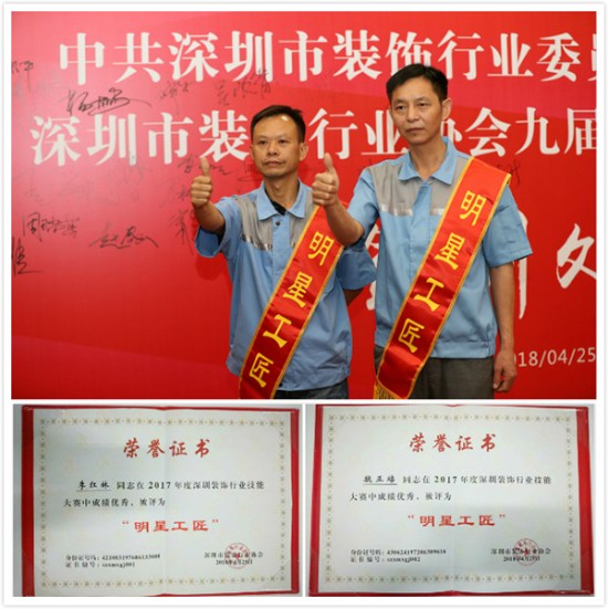 日前,深圳市方大建科集團有限公司員工李紅林、魏正培,憑借過硬的技術、精湛的工藝,在深圳市裝飾行業(yè)明星工匠評選活動中脫穎而出,榮獲“明星工匠”稱號。