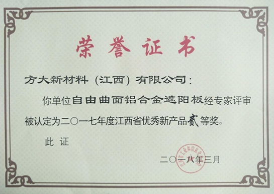 近日,江西省工信委在全省工業(yè)和信息化技術(shù)創(chuàng)新工作會公布了2017年度優(yōu)秀新產(chǎn)品獲獎名單,方大集團全資子公司方大新材料(江西)有限公司的“青花瓷鋁單板”、“自由曲面鋁合金遮陽板”兩項新產(chǎn)品獲得了2017年江西省優(yōu)秀新產(chǎn)品二等獎。