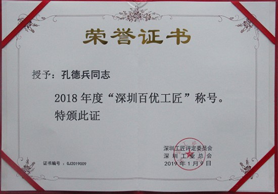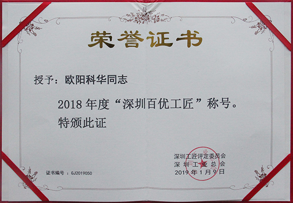 為促進(jìn)深圳市技能人才隊(duì)伍建設(shè),培養(yǎng)深圳工匠群體,弘揚(yáng)崇尚技能、尊重人才的深圳工匠精神,深圳工業(yè)總會(huì)組織開(kāi)展第三屆“深圳百優(yōu)工匠”評(píng)選活動(dòng)。方大智創(chuàng)科技員工歐陽(yáng)科華、朱振飛、孔德兵在技術(shù)創(chuàng)新、攻克技術(shù)難關(guān)、傳承傳統(tǒng)工藝等方面做出較大成績(jī),具有良好的職業(yè)道德和敬業(yè)精神,并在公司里產(chǎn)生良好經(jīng)濟(jì)社會(huì)效益和示范作用。他們不僅在企業(yè)充分證明了他們的價(jià)值,此次獲得的殊榮更表明他們得到行業(yè)的尊敬和認(rèn)可。