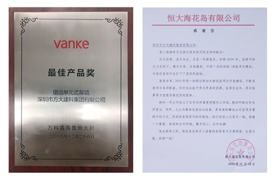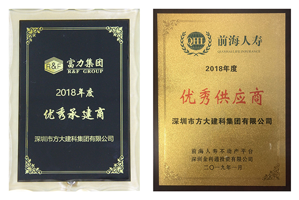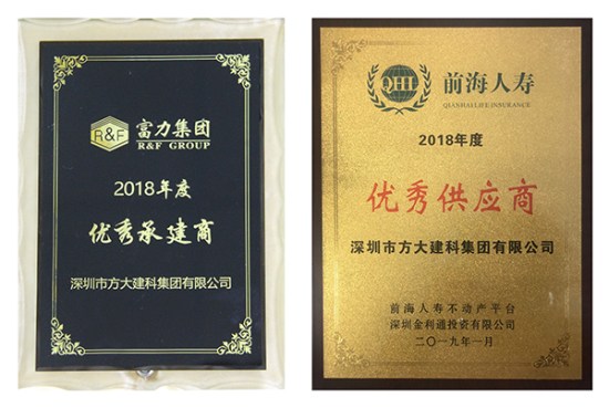 富力集團授予方大建科“2018年度優(yōu)秀承建商”、前海人壽授予方大建科“2018年度優(yōu)秀供應(yīng)商”、 萬科授予方大建科“最佳產(chǎn)品獎”、恒大?;◢u給方大建科一封感謝信。年末獲得的各大地產(chǎn)商授予的榮譽,涵蓋產(chǎn)品質(zhì)量、工程交期、客戶服務(wù)等多個方面,是業(yè)主對方大建科在2018年經(jīng)營管理及公司綜合實力的充分認可。