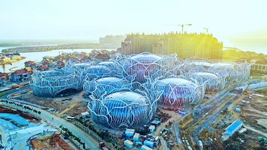 ??凇ず愦蠛;◢u位于海南省儋州市,該島由三個既獨立又緊密相連的離岸式島嶼組成,從高空俯瞰,形狀猶如一朵盛開的鮮花。方大建科承建國際會議中心幕墻工程,由9個單獨的球型建筑組成,各球體幕墻采用了玻璃面板。項目團隊攻克異形幕墻設(shè)計施工、鋼結(jié)構(gòu)屋蓋跨度大以及施工作業(yè)面小等難題,與業(yè)主攜手并肩,互相激勵,不辭一切加快1#島項目建設(shè),為?;◢u的開業(yè)打下了堅實的基礎(chǔ)。