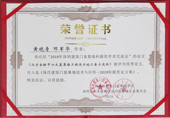 本次學術交流會上,方大建科發(fā)表了文林編寫的《豎向大線條插接型單元幕墻設計淺析》、黃曉青、鄧軍華編寫的《漢京金融中心大廈幕墻工程設計施工要點淺析》、楊全新編寫的《新型工業(yè)化幕墻的發(fā)展思路》共三篇論文并入選《現代建筑門窗幕墻技術與應用》論文集,其中《豎向大線條插接型單元幕墻設計淺析》與《漢京金融中心大廈幕墻工程設計施工要點淺析》被評為優(yōu)秀論文。
