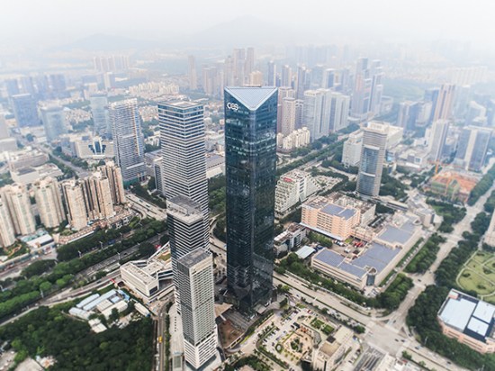 深業(yè)上城(南區(qū))塔2位于深圳市福田區(qū)的中心,建筑高度300米,大廈的外形簡潔,通過內(nèi)部空間和外立面高水準(zhǔn)細(xì)節(jié)設(shè)計來展現(xiàn)建筑的優(yōu)雅魅力。建筑的外立面為純凈的全超白玻璃幕墻,標(biāo)準(zhǔn)單元板寬度3米、高度4.5米,達(dá)到通常分格(1.5米)的兩倍,最大的單元板塊高度達(dá)8米,為用戶提供無遮擋視覺效果。為了降低風(fēng)荷載,在塔樓四角做了內(nèi)凹處理,L型的轉(zhuǎn)角板塊為1.5+3米。方大建科在施工過程中,對超高單元板塊垂直運輸、安裝等難點認(rèn)真分析并給出了最優(yōu)的施工方案,通過生產(chǎn)、施工環(huán)節(jié)的質(zhì)量控制實現(xiàn)了玻璃及板塊平整度的極致效果。項目完成后,建筑水平與垂直線條勾勒出秩序均衡美,簡練、寧靜外立面體現(xiàn)人與自然和諧融合。