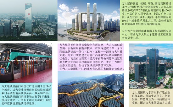 24年來,方大堅(jiān)持智能、低碳、環(huán)保,推動(dòng)我國(guó)幕墻及PVDF鋁板材料產(chǎn)業(yè)創(chuàng)新發(fā)展。方大高端幕墻系統(tǒng)及PVDF鋁板材料獲得專利400多項(xiàng),產(chǎn)品廣泛應(yīng)用于北京、上海、廣州、深圳,以及亞洲、歐洲、美洲、非洲等國(guó)內(nèi)外100多個(gè)城市數(shù)千項(xiàng)重大工程,包括北京外交部大樓、上?;ㄆ煦y行大廈、廣州凱達(dá)爾樞紐國(guó)際廣場(chǎng)、深圳寶安國(guó)際機(jī)場(chǎng)T3航站樓、深圳漢京中心、重慶來福士廣場(chǎng)、南昌萬達(dá)茂、武漢漢秀劇場(chǎng)、澳門科學(xué)館、澳大利亞萬豪酒店、英國(guó)倫敦摩天大廈、安哥拉羅安達(dá)新國(guó)際機(jī)場(chǎng)航站樓、沙特諾拉公主大學(xué)城等全球標(biāo)志性工程或重點(diǎn)建設(shè)項(xiàng)目,屢獲“魯班獎(jiǎng)(國(guó)家優(yōu)質(zhì)工程)”、“詹天佑土木工程獎(jiǎng)”等行業(yè)大獎(jiǎng),創(chuàng)造了我國(guó)建筑幕墻行業(yè)多項(xiàng)第一,是全球前五強(qiáng)高端幕墻系統(tǒng)供應(yīng)商和服務(wù)商。