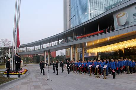 28日晨,集團總部以及駐深公司各部門經(jīng)理及以上管理人員聚集到方大城,舉行升旗儀式。7時零2分,國旗和方大旗伴隨著日出冉冉升起,激昂的國歌在每個人耳邊奏響,為方大集團的二十八周年紀念日帶來祝福。集團創(chuàng)始人、董事長熊建明講話,回顧了二十八年來的奮斗與拼搏,對每一位為公司做出貢獻的員工表示感謝,并希望大家繼續(xù)努力,為公司美好的明天再創(chuàng)輝煌。