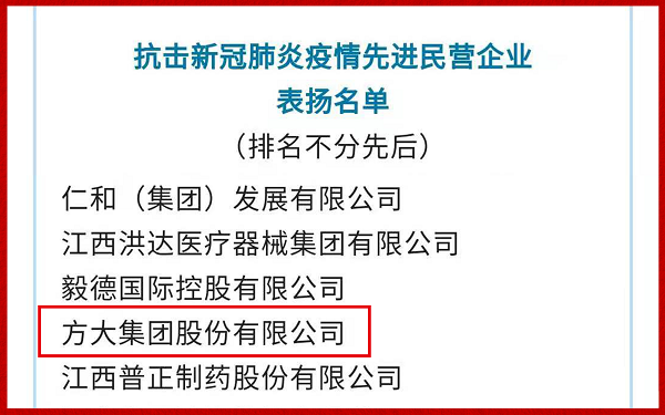 近日,中華全國工商業(yè)聯(lián)合會(huì)發(fā)布《全國工商聯(lián)關(guān)于對抗擊新冠肺炎疫情做出優(yōu)異成績的先進(jìn)民營企業(yè)予以表揚(yáng)的通報(bào)》,對“抗擊新冠肺炎疫情先進(jìn)民營企業(yè)”給予表揚(yáng),方大集團(tuán)榜上有名。