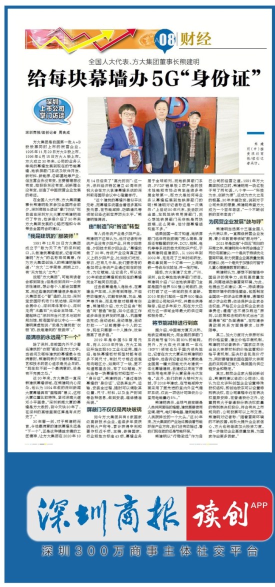 在全國人大代表、方大集團(tuán)董事長熊建明赴京參加全國兩會(huì)前夕,深圳商報(bào)&讀創(chuàng)“掌門訪談”欄目組在深圳方大大廈對熊建明進(jìn)行了專訪。他詳細(xì)介紹了30年來方大集團(tuán)發(fā)展的心路歷程和今年帶去全國兩會(huì)的建議。